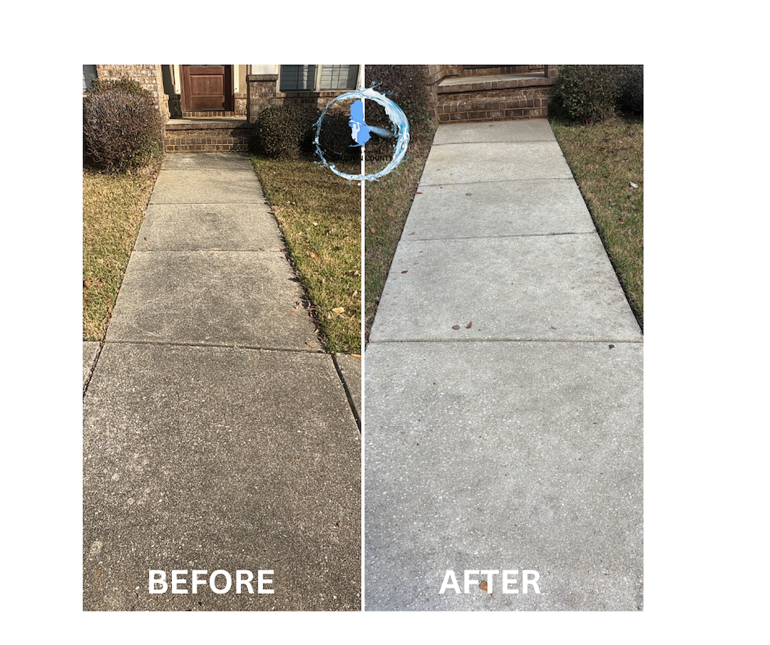 Our team arrived on-site in Malbis, AL with professional-grade surface cleaning equipment specifically designed to safely and effectively clean concrete without causing damage. Using a combination of specialized cleaning solutions and high-efficiency surface cleaners, we were able to lift years of built-up grime from the driveway and walkways. The process not only improved the appearance of the concrete but also helped eliminate slippery organic growth that can create safety hazards for homeowners and guests.