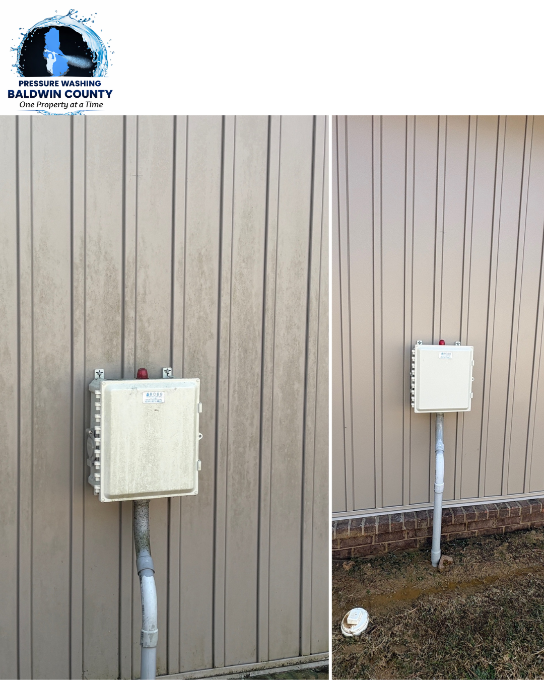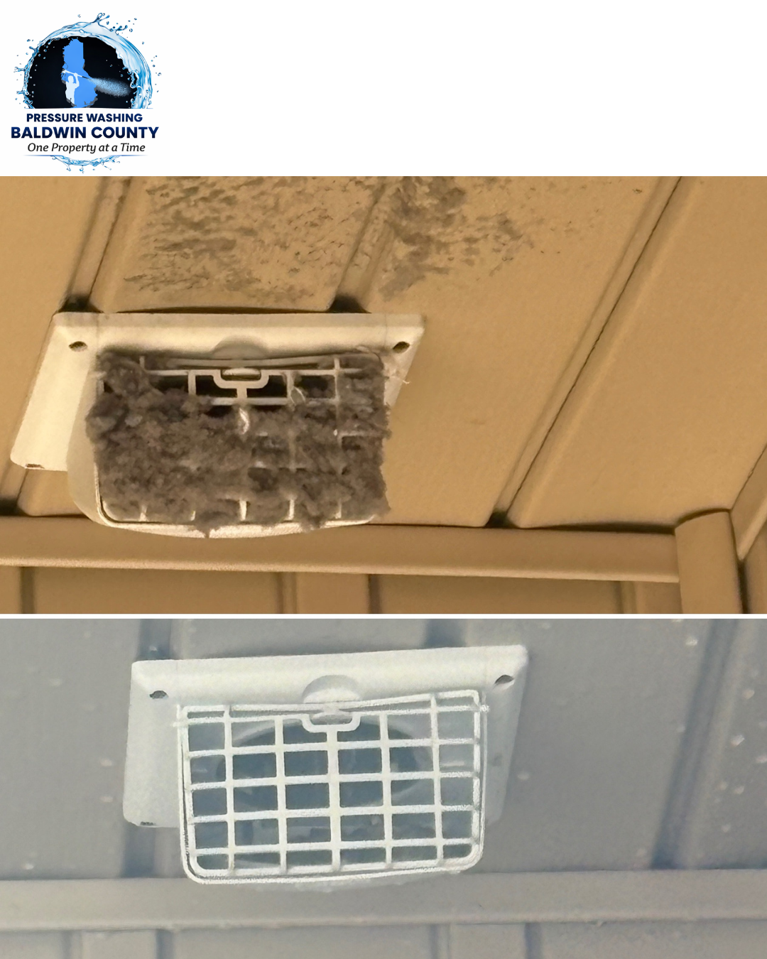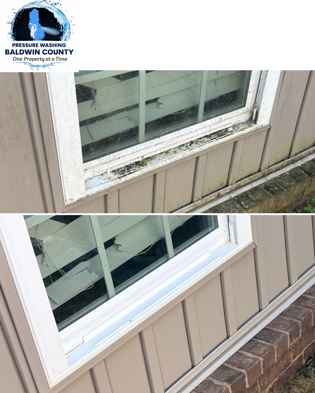 Our team used a proven soft washing method for the house wash, safely removing organic growth, oxidation, and grime without the risk of damage to siding, trim, or paint. Soft washing is the preferred approach for residential homes in Spanish Fort due to the humid coastal climate, which accelerates mold and mildew growth. The results were immediate—brighter siding, cleaner trim, and a fresh, like-new appearance.