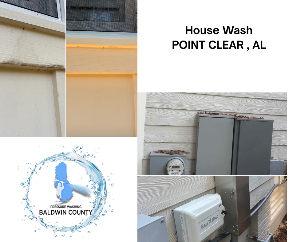 This recent service included a full soft wash house cleaning, designed to safely remove dirt, mildew, algae, and salt-air buildup that are common in coastal Alabama communities. Using industry-best equipment and eco-friendly solutions, our team gently restored the home’s exterior to a like-new shine without causing any damage to siding, trim, paint, or landscaping. Homeowners in Point Clear appreciate the long-lasting curb appeal and increased property value that professional soft washing provides.