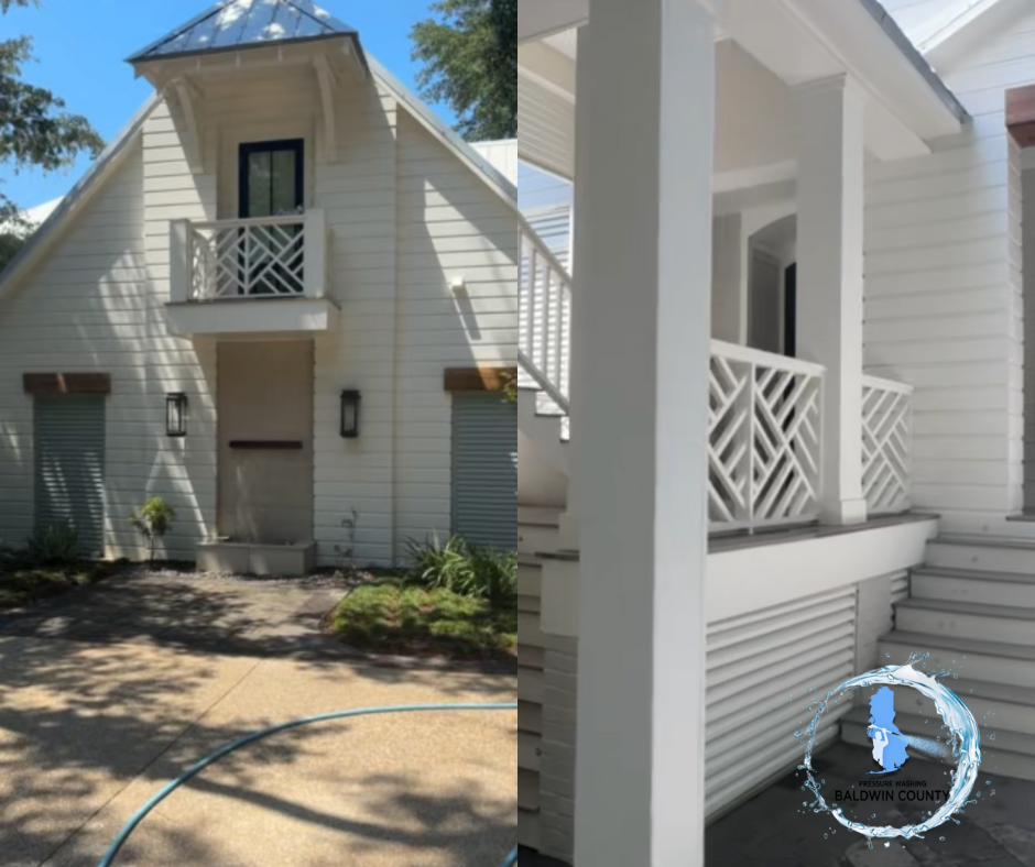 Baldwin County’s Top House Washing Company recently completed an exceptional exterior cleaning project in beautiful Point Clear, AL, delivering outstanding results through our professional house washing and concrete cleaning services.