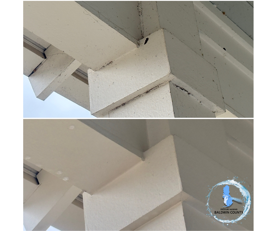 Our experienced team used industry-leading soft washing techniques to safely and effectively clean the home’s exterior. This process removed built-up dirt, mold, mildew, and algae from the siding and exterior surfaces without damaging paint or finishes. Soft washing is ideal for Fairhope homes, as it delivers a deep clean while protecting the structure and extending the life of exterior materials.